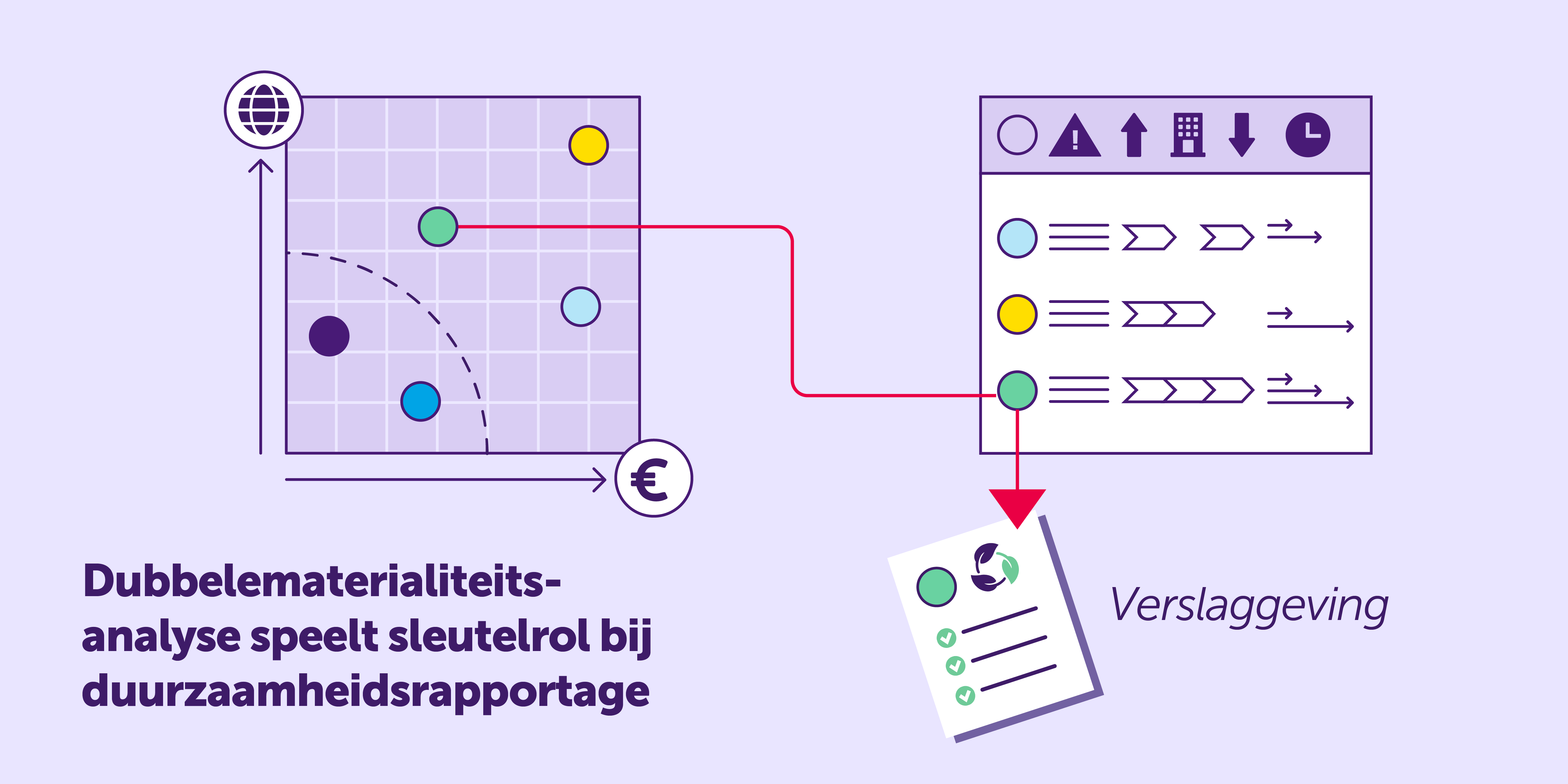 • Dubbelematerialiteitsanalyse speelt sleutelrol bij CSRD; het biedt input voor duurzame en financiële koers ondernemingen